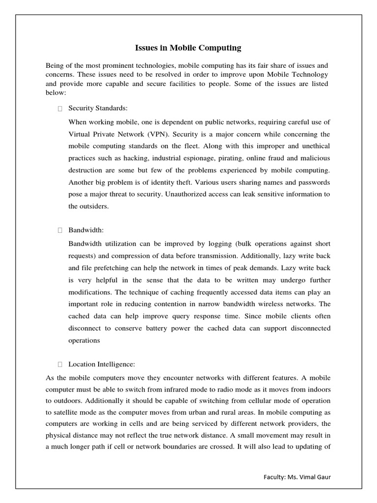 Being of the most prominent technologies, mobile computing has its fair share of issues and
