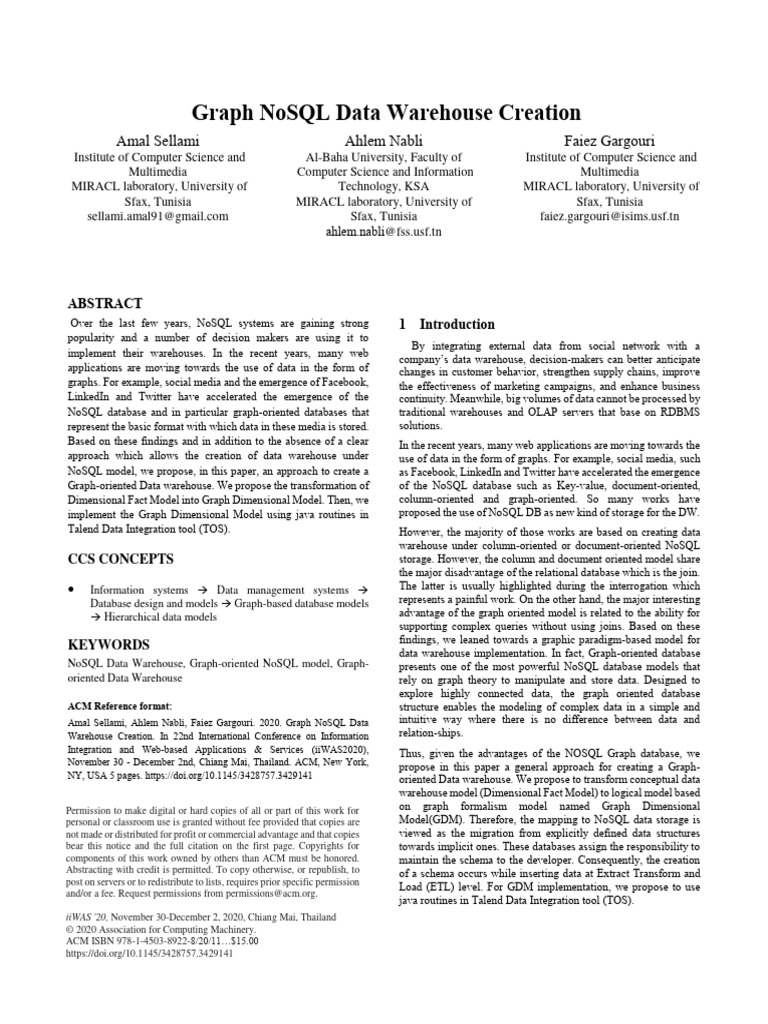 iiWAS ’20, November 30 - December 2nd, Chiang Mai, Thailand A. Sellami et al.
