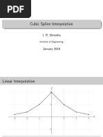 Consider the problem of constructing two cubic splines to fit three data points p1 = (x1, y1), p2 = (x2, y2), p3 = (x3, y3). Refer to the last plot on the right, above. This is the simplest case of cubic spline interpolation that will illustrate the methods used in more normal cases where several points are present. The key characteristics of cubic spline interpolation are: 1. 2. 3. 4. Curve passes through all specified data points (C0 continuity) 1st derivative continuity (C1) at interior points 2nd derivative continuity (C2) at interior points Boundary conditions are specified at the free ends