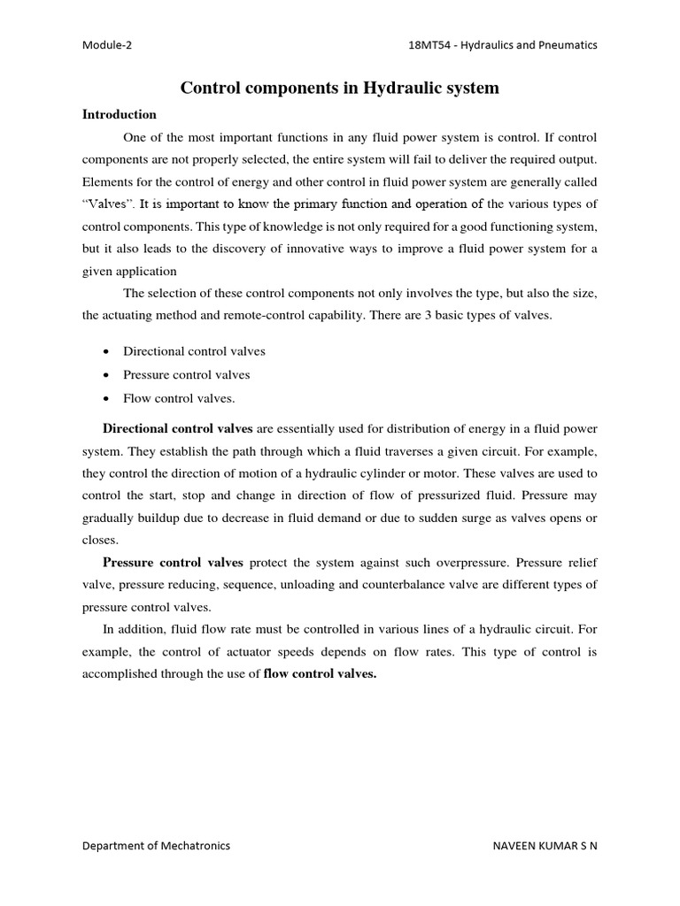 Module-2 18MT54 - Hydraulics and Pneumatics