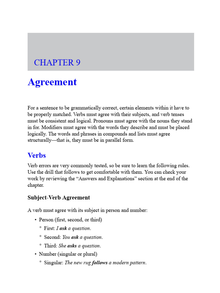 be properly matched. Verbs must agree with their subjects, and verb tenses