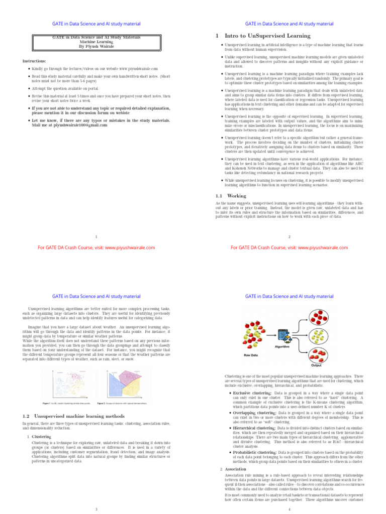 • Revise this material at least 5 times and once you have prepared your short notes, then and aims to group similar data items into clusters. It differs from supervised learning,