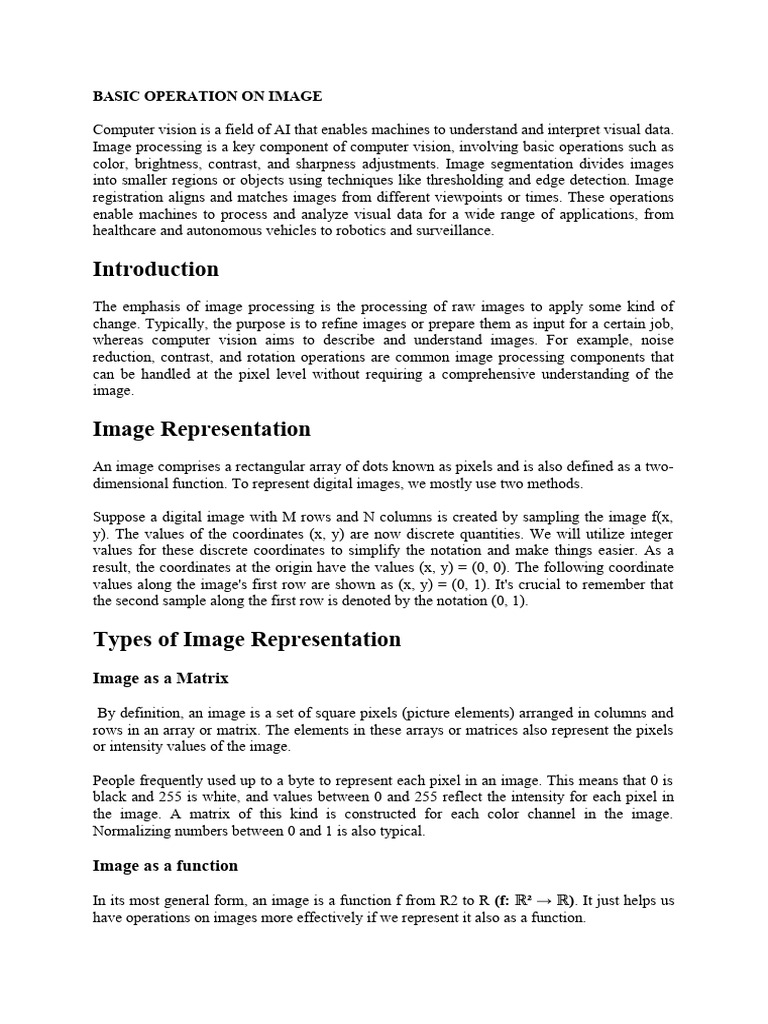 Image processing is a key component of computer vision, involving basic operations such as