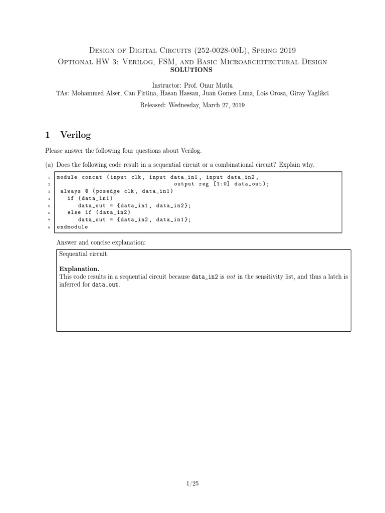 (a) Does the following code result in a sequential circuit or a combinational circuit? Explain why.