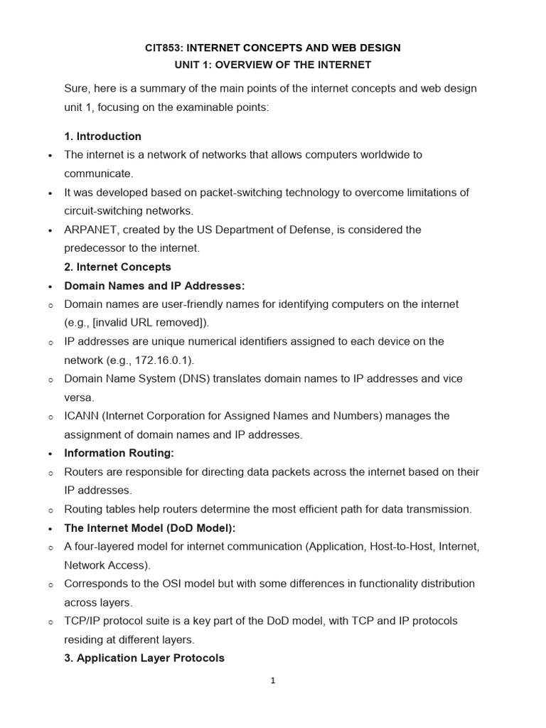 o A four-layered model for internet communication (Application, Host-to-Host, Internet,