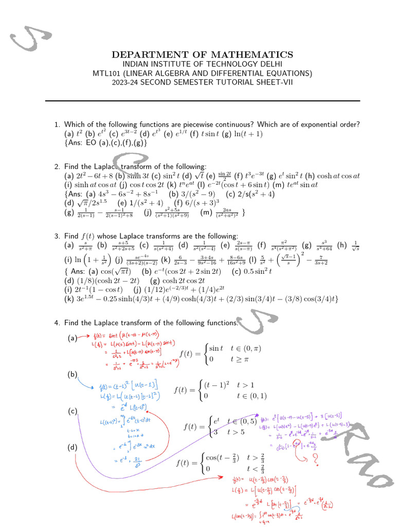 2023-24 SECOND SEMESTER TUTORIAL SHEET-VII