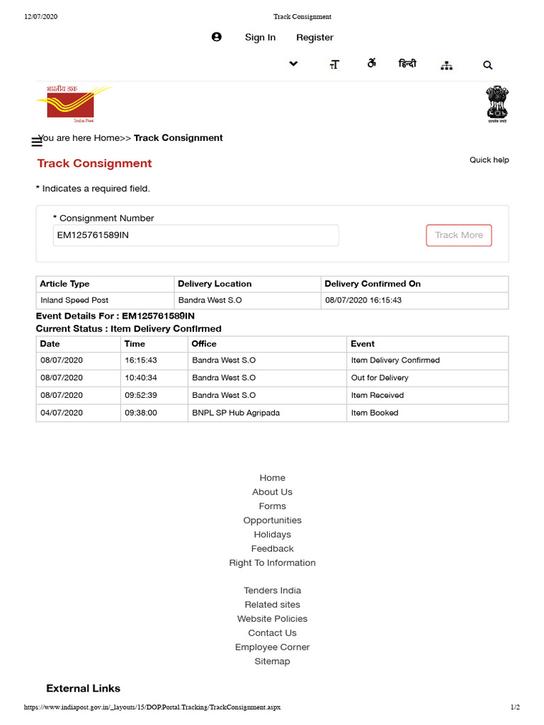 https://www.indiapost.gov.in/_layouts/15/DOP.Portal.Tracking/TrackConsignment.aspx 2/2
