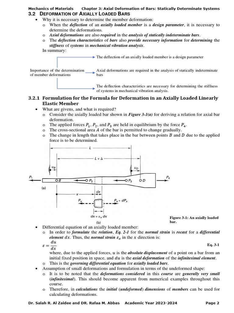 Mechanics of Materials Chapter 3: Axial Deformation of Bars: Statically Determinate Systems