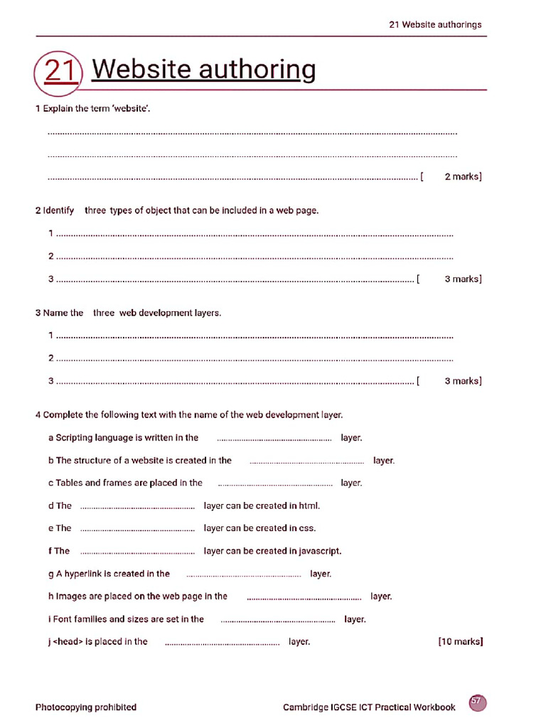 Photocopying prohibited Cambridge IGCSE ICT Practical Workbook &21 Website authoring