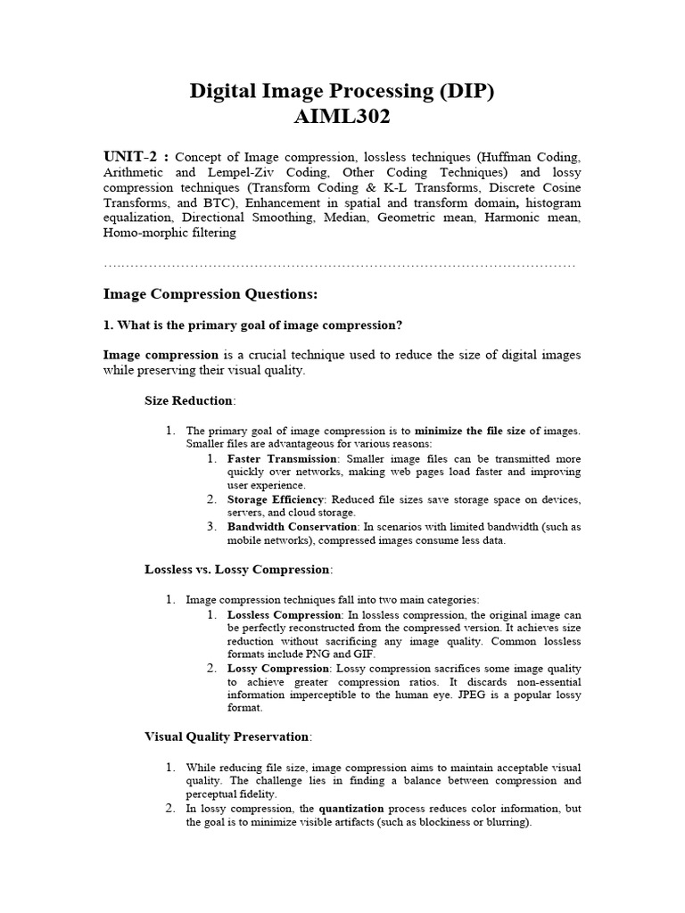 UNIT-2 : Concept of Image compression, lossless techniques (Huffman Coding,