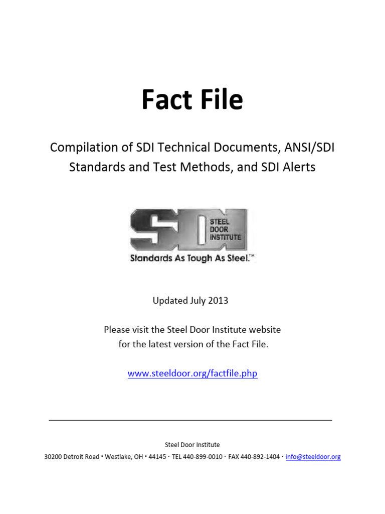 SDI – 108 Recommended Selection and Usage Guide for Standard Steel Doors