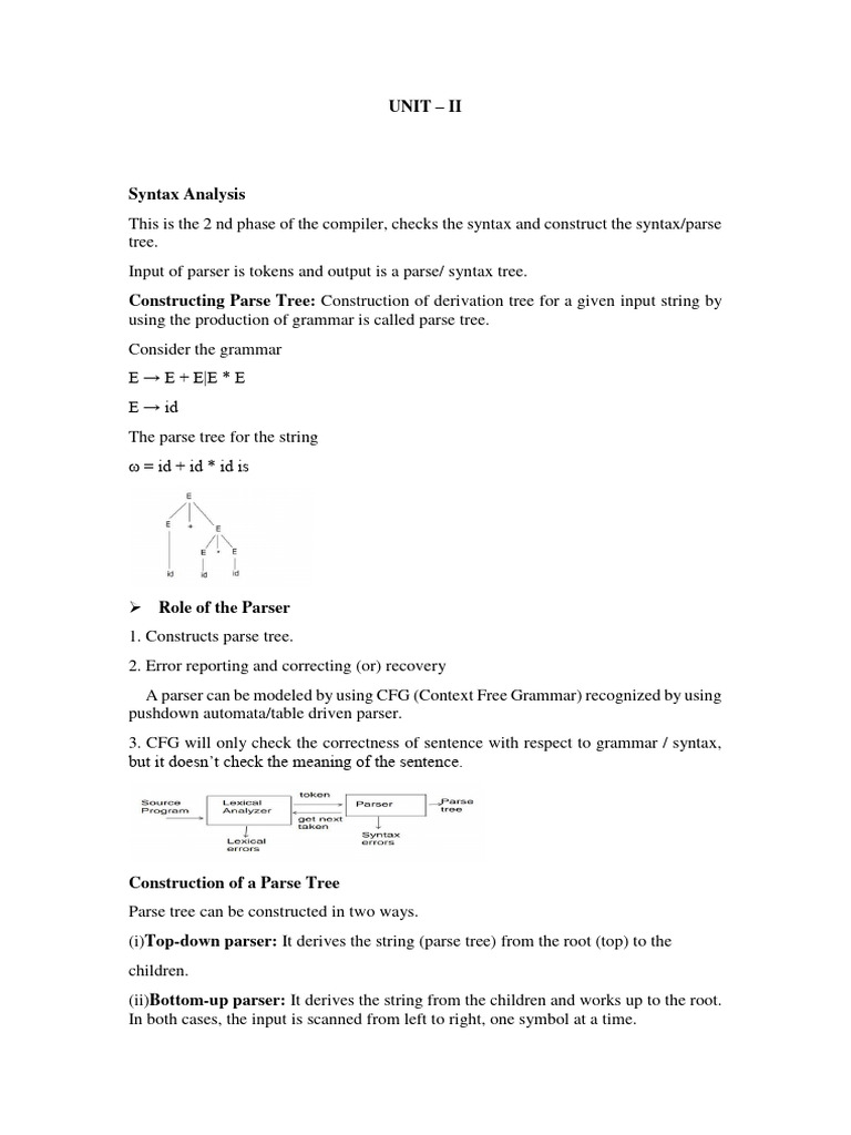 (i)Top-down parser: It derives the string (parse tree) from the root (top) to the