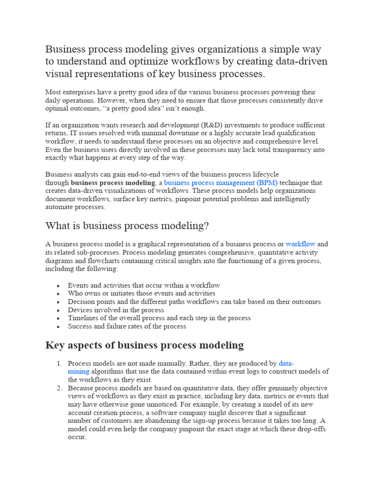 its related sub-processes. Process modeling generates comprehensive, quantitative activity