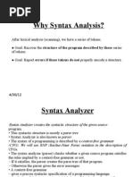 • uses a grammar to check structure of tokens       •   Intermediate code