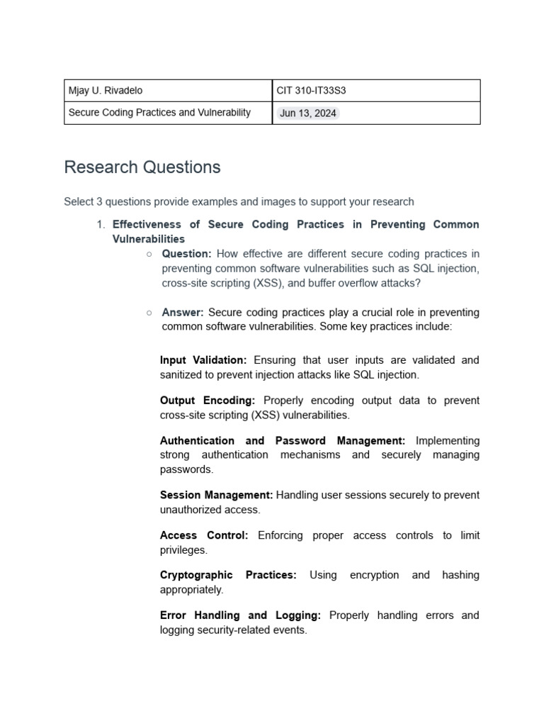 1. Effectiveness of Secure Coding Practices in Preventing Common
