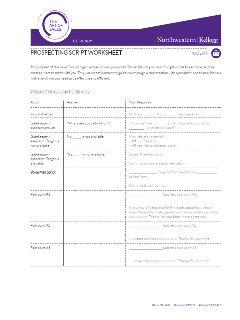 PROSPECTING SCRIPT WORKSHEET TOOLKIT