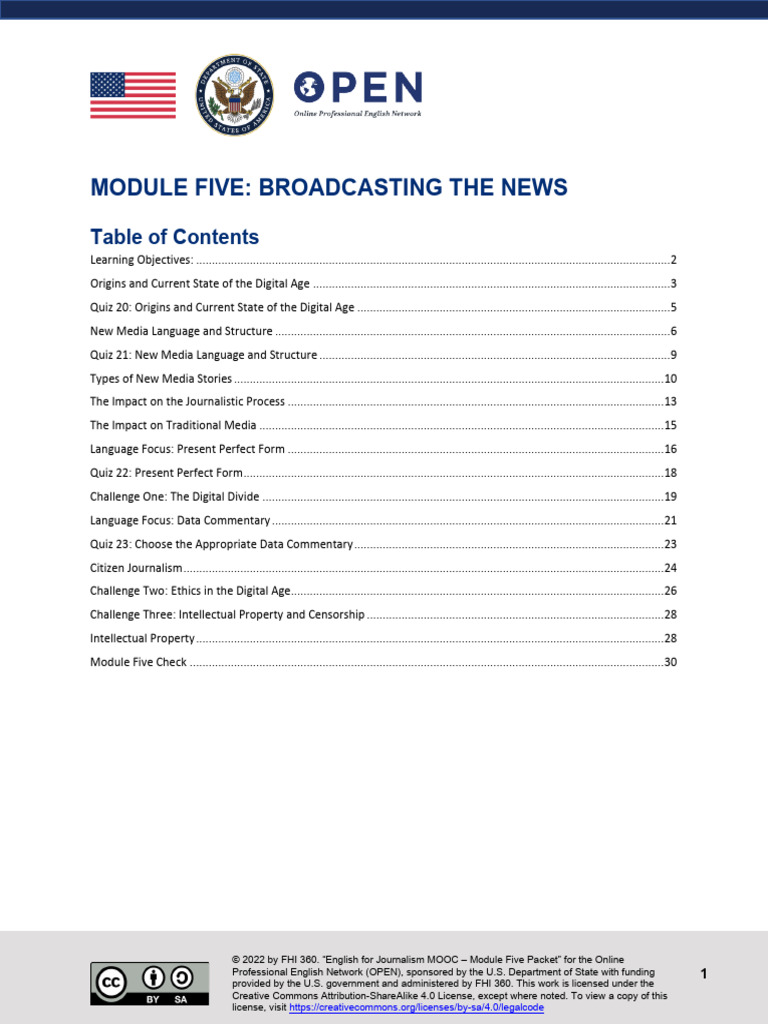 © 2022 by FHI 360. “English for Journalism MOOC – Module Five Packet” for the Online