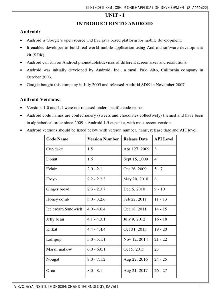 BTECH II-SEM, CSE: MOBILE APPLICATION DEVELOPMENT (21A050422)