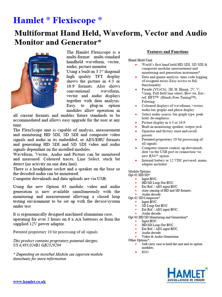 Hamlet is a registered Trademark of Hamlet Video International Limited. Flexiscope, Whichwire and Videoscope are registered Trademarks of Hamlet Video