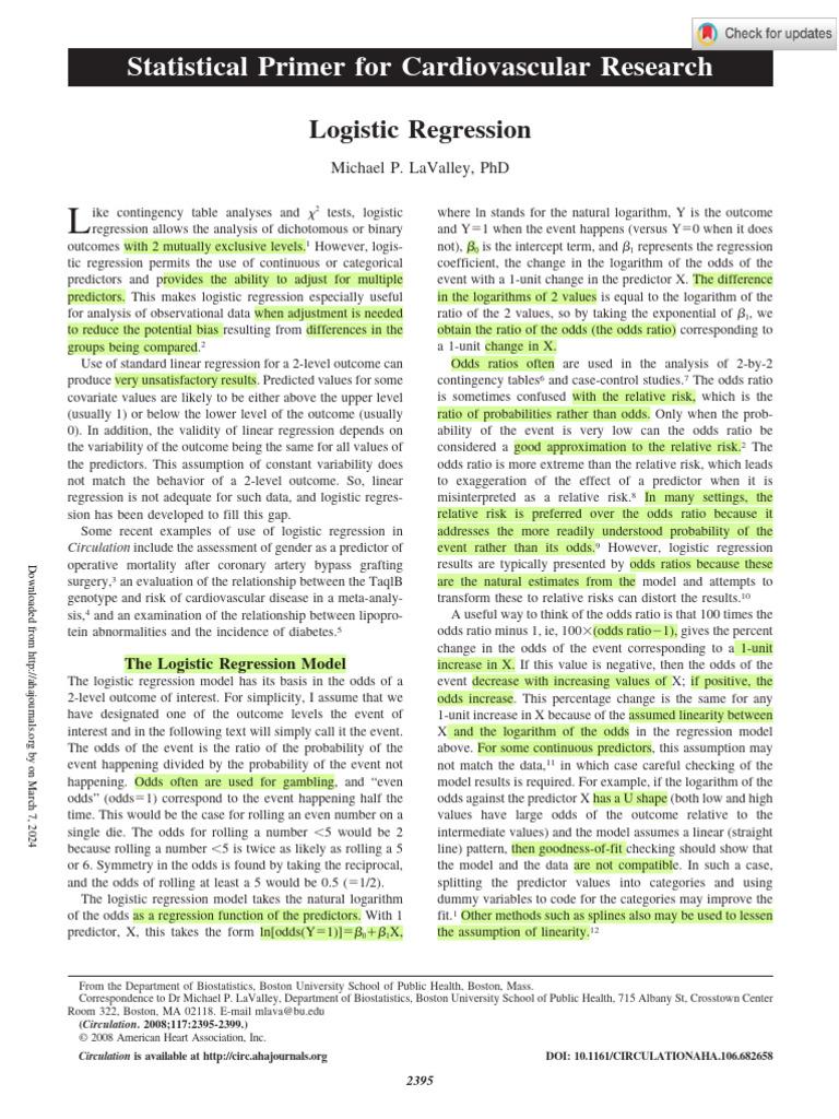Humphries SE, Miller GJ, Eiriksdottir G, Gudnason V, Kauma H, Kakko 17. Bagley SC, White H, Golomb BA. Logistic regression in the medical
