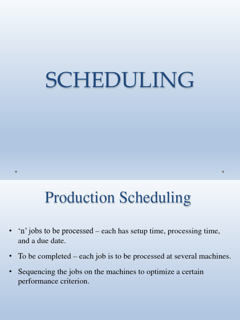• ‘n’ jobs to be processed – each has setup time, processing time,