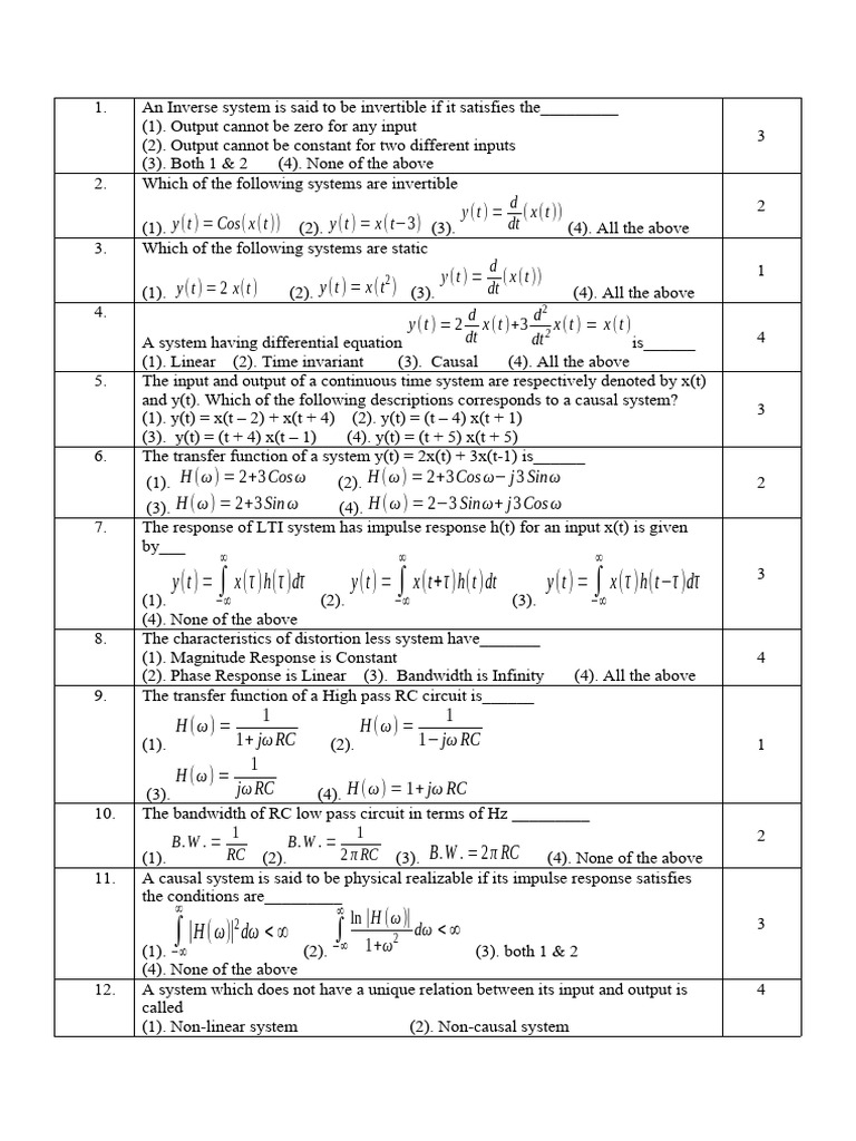 (1). Linear (2). Time invariant (3). Causal (4). All the above