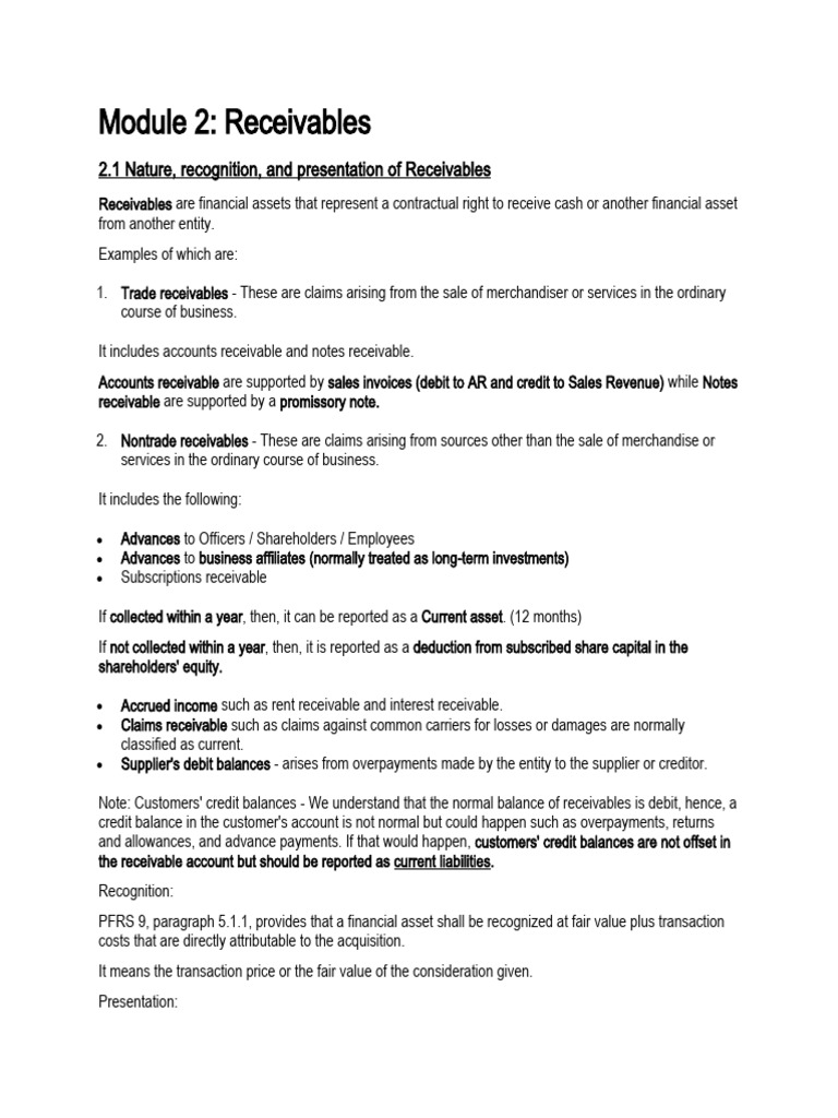 2.1 Nature, recognition, and presentation of Receivables