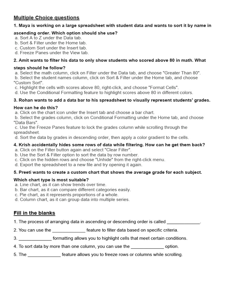 1. Maya is working on a large spreadsheet with student data and wants to sort it by name in