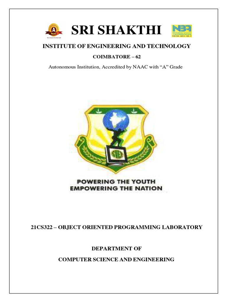 20CS315 – OBJECT ORIENTED PROGRAMMING LAB
