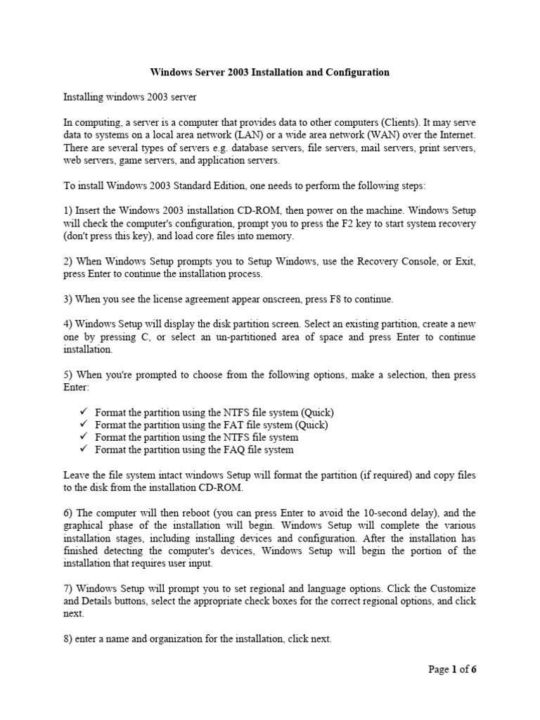 To install Windows 2003 Standard Edition, one needs to perform the following steps: