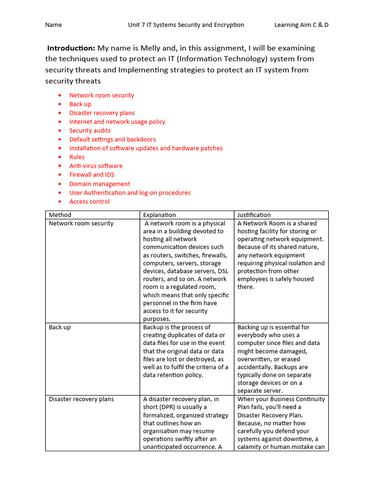 Name Unit 7 IT Systems Security and Encryption Learning Aim C & D