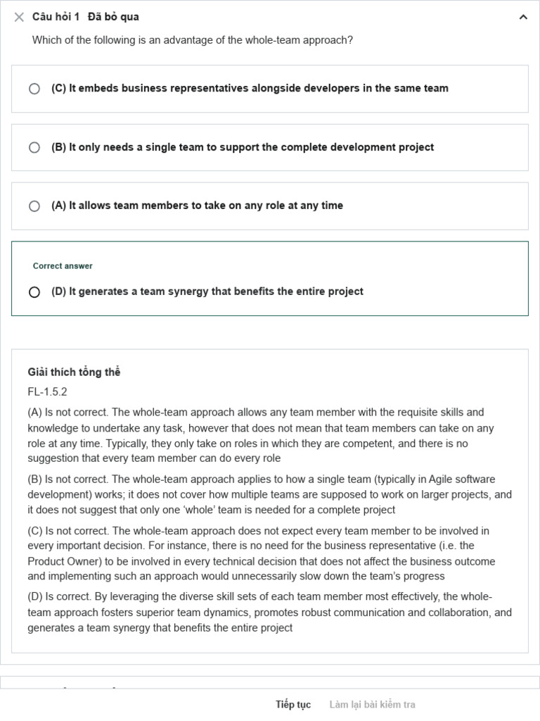 (B) Is not correct. The whole-team approach applies to how a single team (typically in Agile software