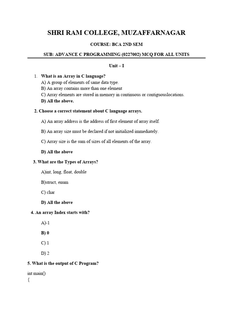 SUB: ADVANCE C PROGRAMMING (0227002) MCQ FOR ALL UNITS