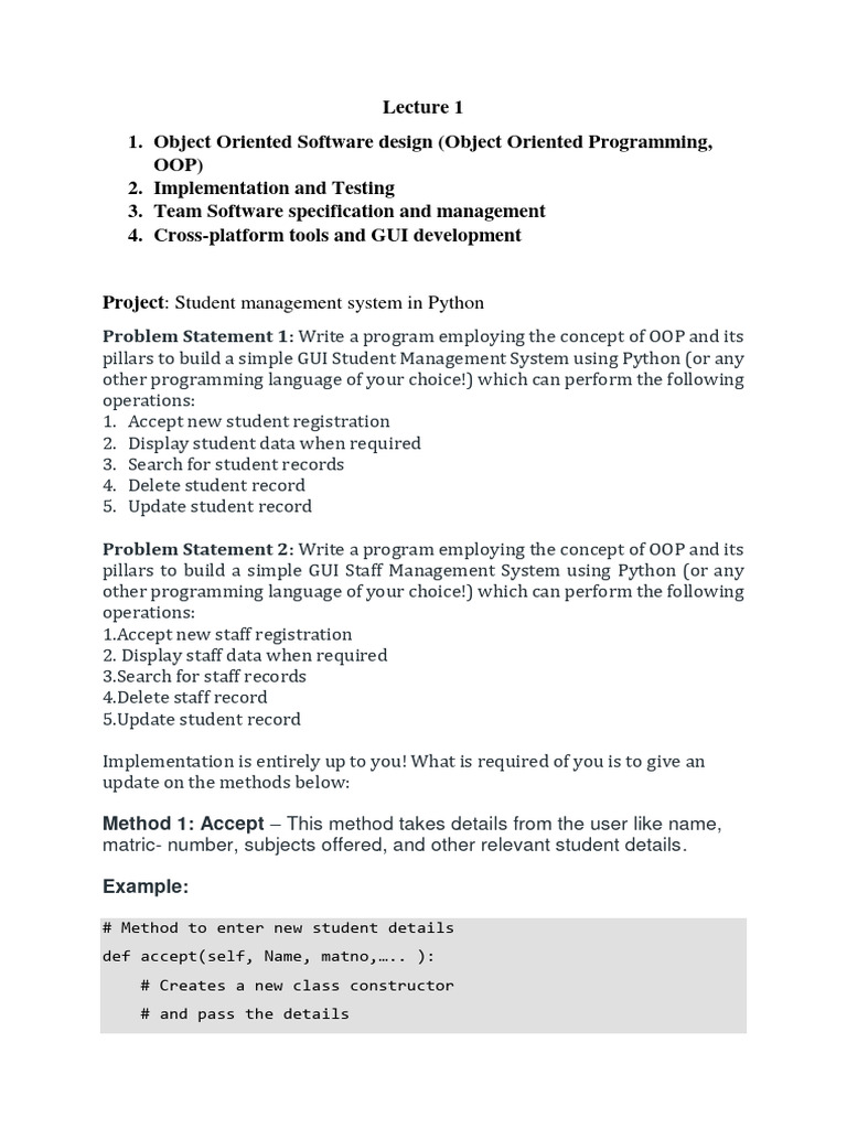Problem Statement 1: Write a program employing the concept of OOP and its