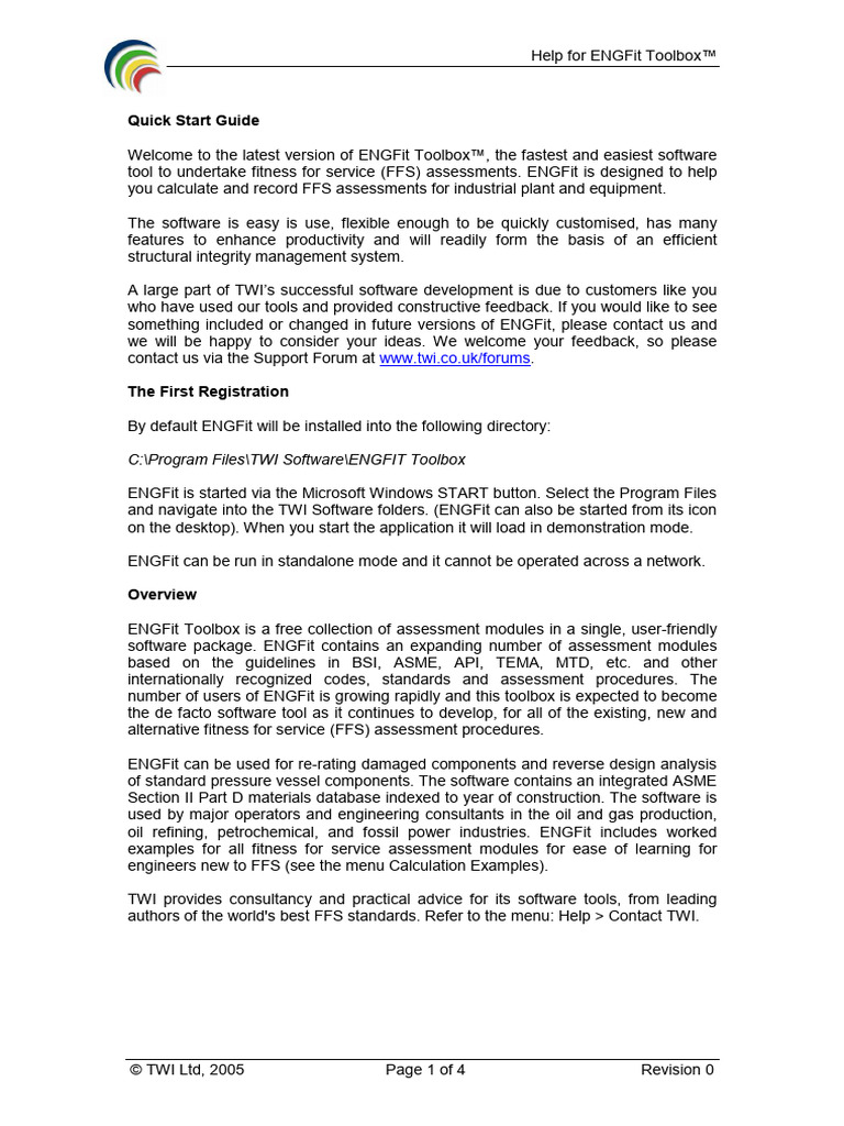 All ENGFit Toobox™ software print and electronic documentation is copyright to TWI