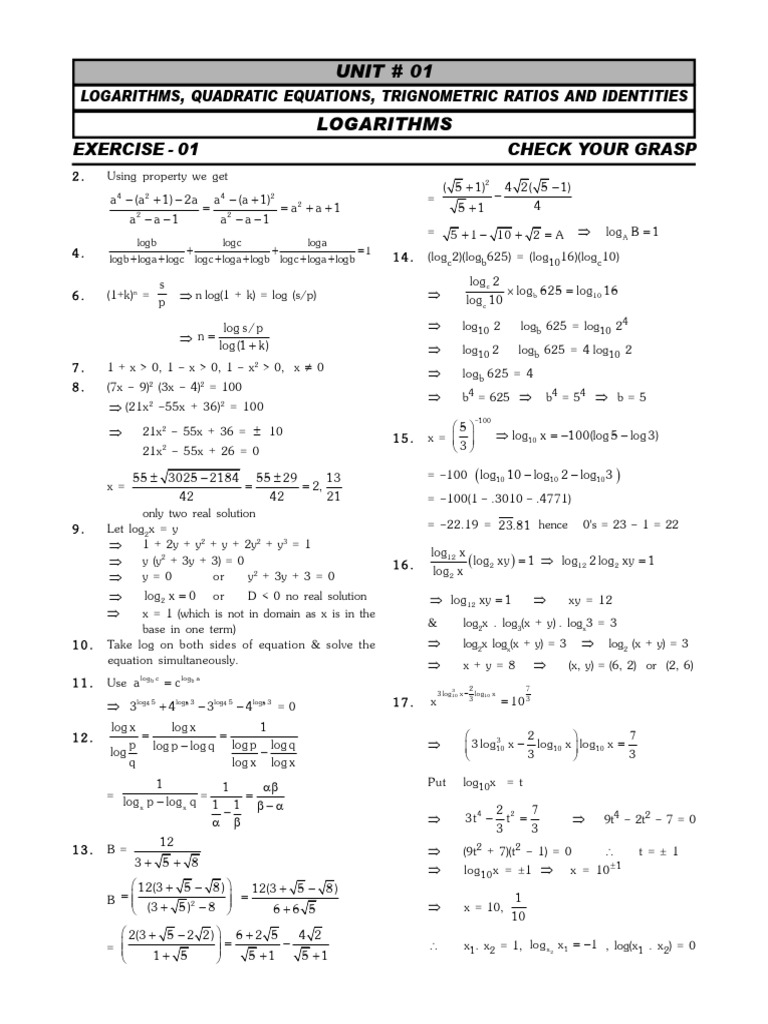 1. x 50 log10 x 10 x = x 50 Let log10x = a, log10y = b, log10z = c