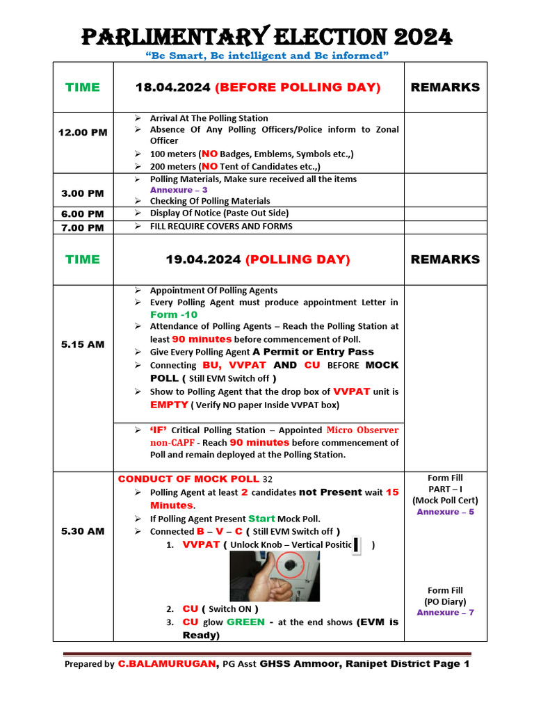 Attendance of Polling Agents – Reach the Polling Station at