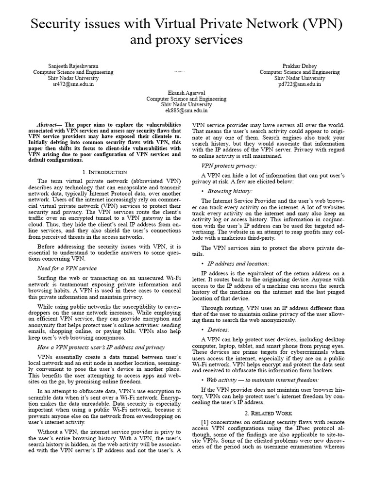 Before addressing the security issues with VPN, it is The VPN services aim to protect the above private de-