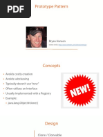 Sometimes creational patterns overlap - there are cases when either Prototype or Abstract Factory would be appropriate. At other times they complement each other: Abstract Factory might store a set of Prototypes from which to clone and return product objects (GoF, p126). Abstract Factory, Builder, and Prototype can use Singleton in their implementations. (GoF, p81, 134). Abstract Factory classes are often implemented with Factory Methods (creation through inheritance), but they can be implemented using Prototype (creation throughdelegation). (GoF, p95) Often, designs start out using Factory Method (less complicated, more customizable, subclasses proliferate) and evolve toward Abstract Factory, Prototype, or Builder (more flexible, more complex) as the designer discovers where more flexibility is needed. (GoF, p136) Prototype doesn't require subclassing, but it does require an "initialize" operation. Factory Method requires subclassing, but doesn't require initialization. (GoF, p116) Designs that make heavy use of the Composite and Decorator patterns often can benefit from Prototype as well. (GoF, p126) The rule of thumb could be that you would need to clone() an Object when you want to create another Object at runtime which is a true copy of the Object you are cloning. True copymeans all the attributes of the newly created Object should be the same as the Object you are cloning. If you could have instantiated the class by using new instead, you would get an Object with all attributes as their initial values. For example, if you are designing a system for performing bank account transactions, then you would want to make a copy of the Object which holds your account information, perform transactions on it, and then replace the original Object with the modified one. In such cases, you would want to use clone() instead of new. [edit]See