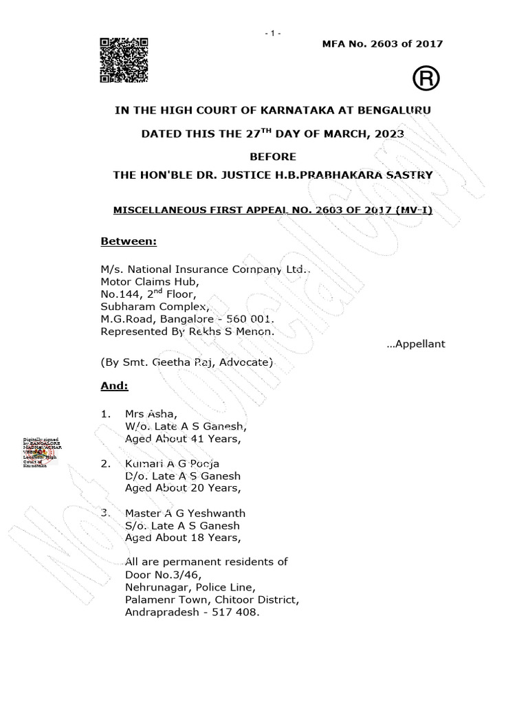 MFA No. 2603 of 2017
