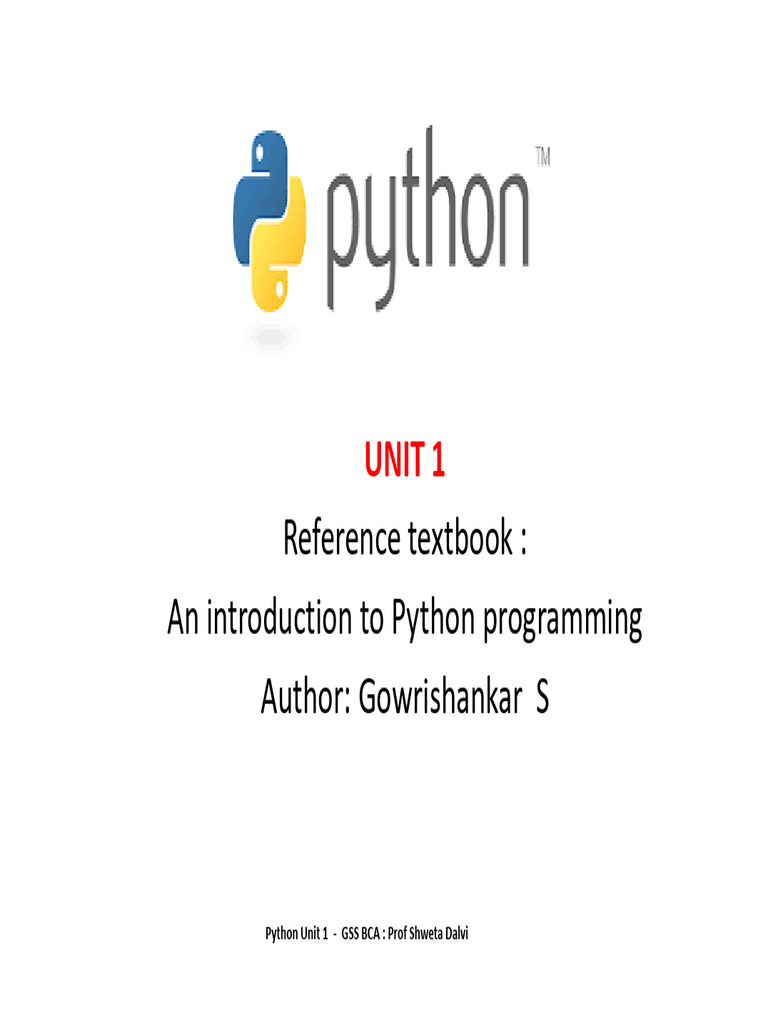 Python Unit 1 - GSS BCA : Prof Shweta Dalvi