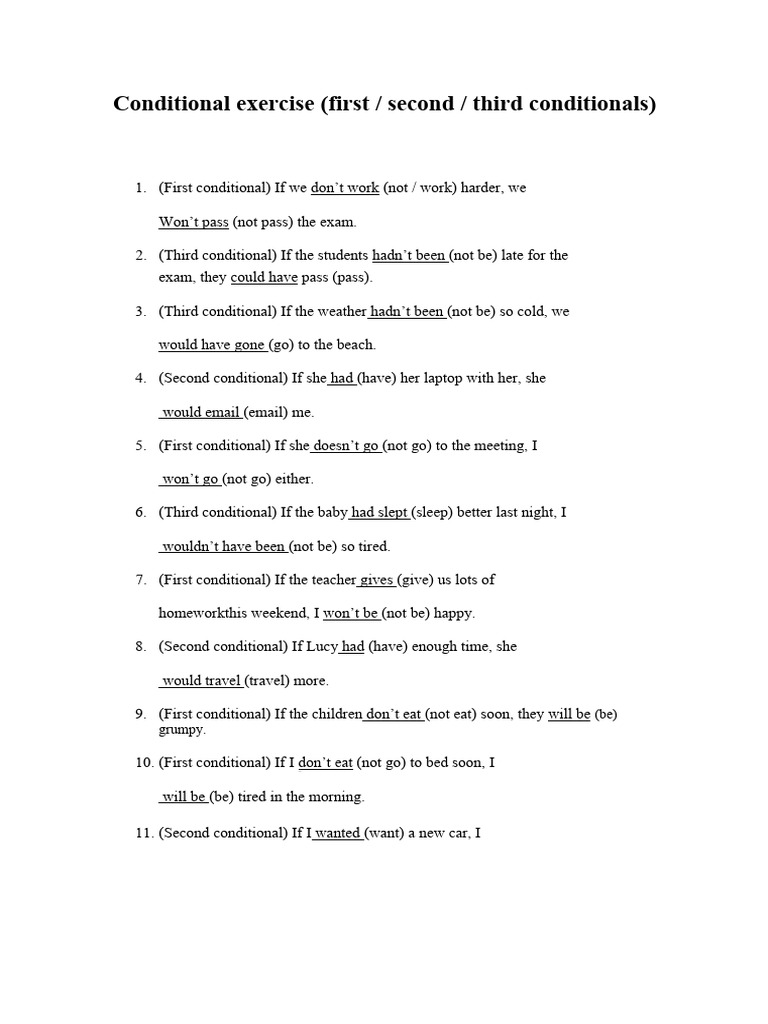 1. (First conditional) If we don’t work harder, we won’t pass the exam.