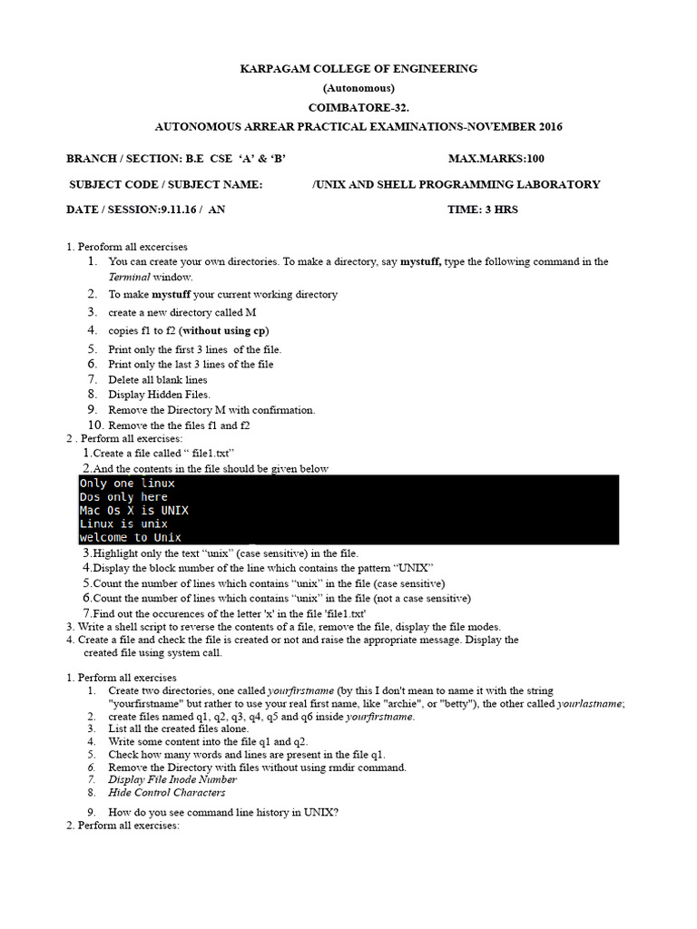 SUBJECT CODE / SUBJECT NAME: /UNIX AND SHELL PROGRAMMING LABORATORY