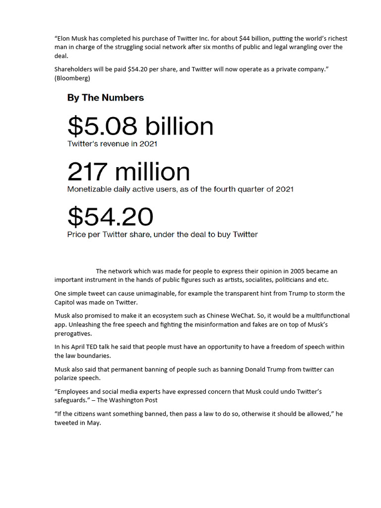 app. Unleashing the free speech and fighting the misinformation and fakes are on top of Musk’s