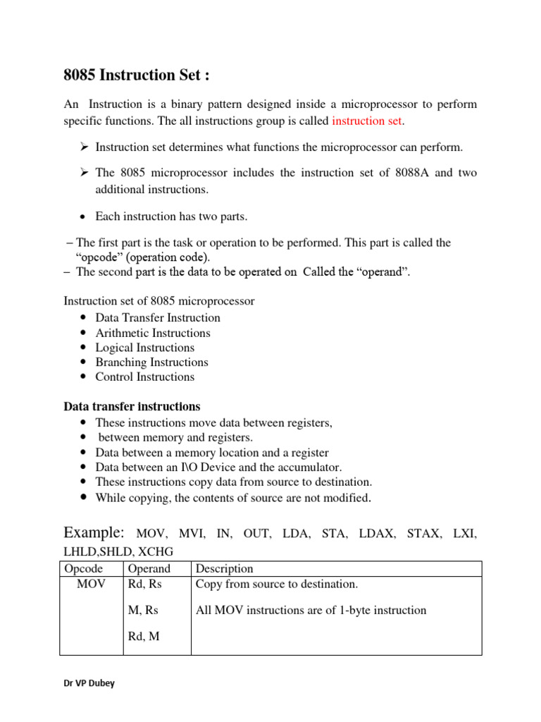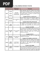 Example: MOV, MVI, IN, OUT, LDA, STA, LDAX, STAX, LXI,