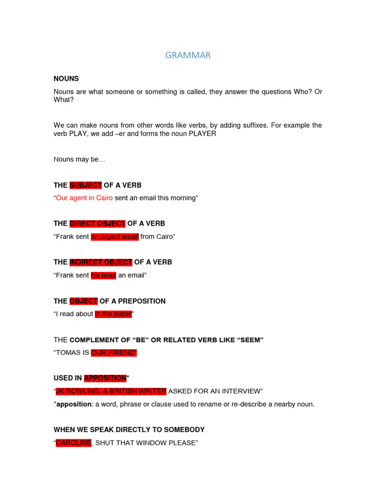 Nouns are what someone or something is called, they answer the questions Who? Or
