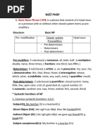 ○ Complex VP: Main verb + auxiliaries/objects/modifiers. Example: