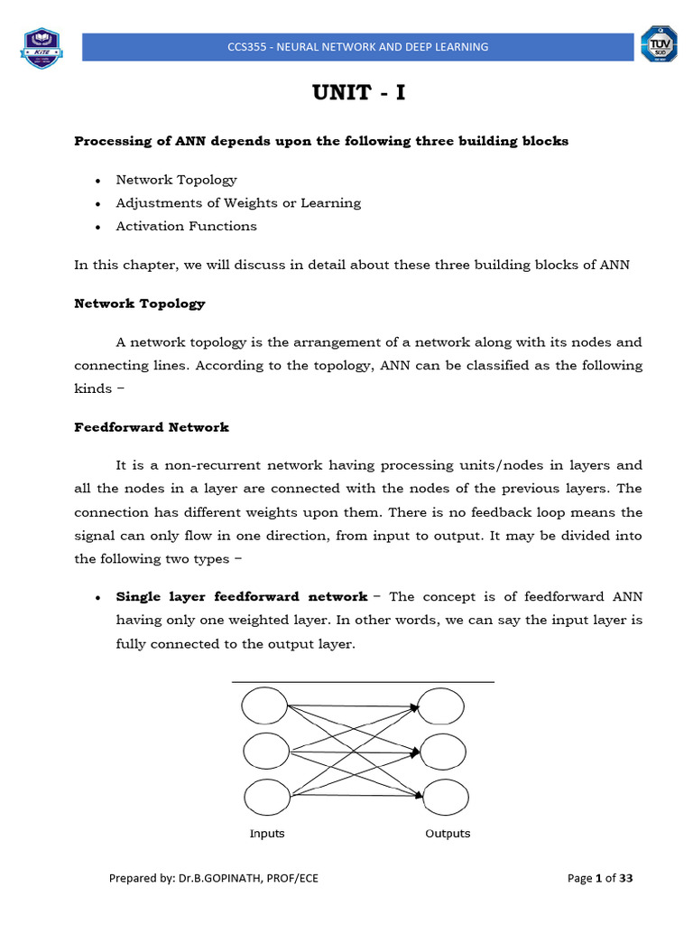 In this chapter, we will discuss in detail about these three building blocks of ANN