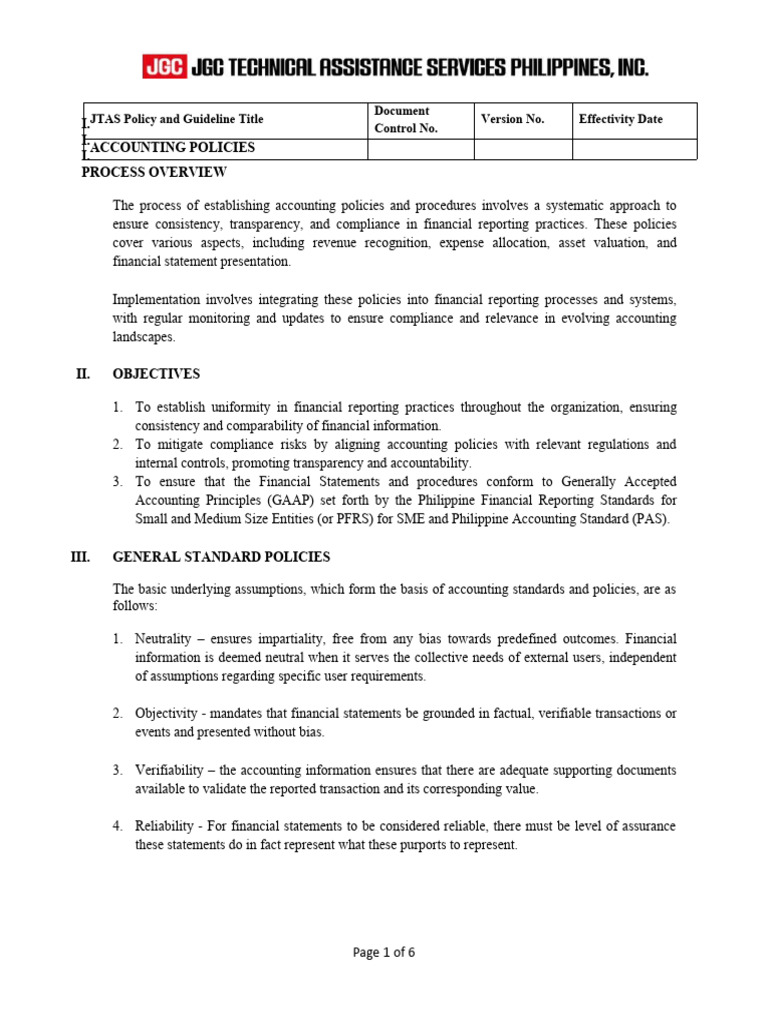 The process of establishing accounting policies and procedures involves a systematic approach to