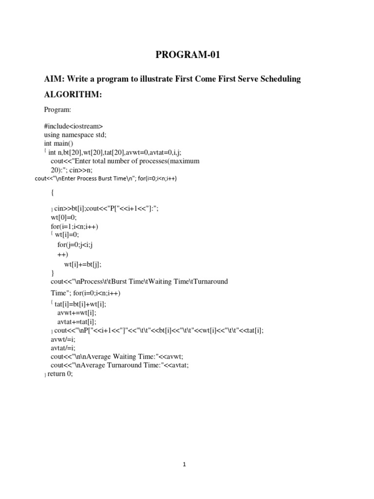 AIM: Write a program to illustrate First Come First Serve Scheduling